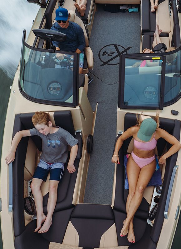 MasterCraft’s underwater exhaust substantially reduces noise in and behind the boat so you can better enjoy good music and great conversations. Now standard on all XT and X models and the XStar S.
